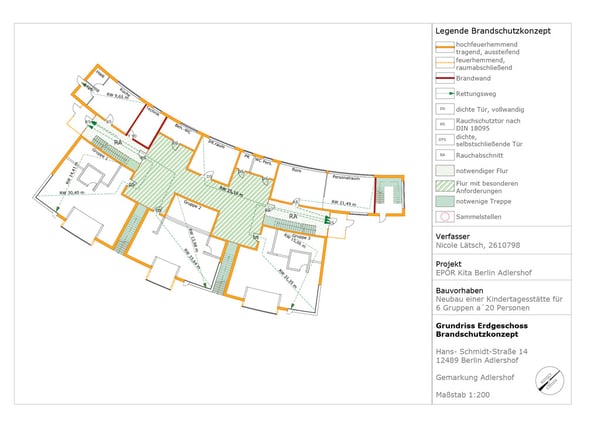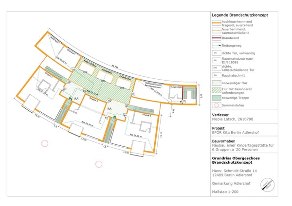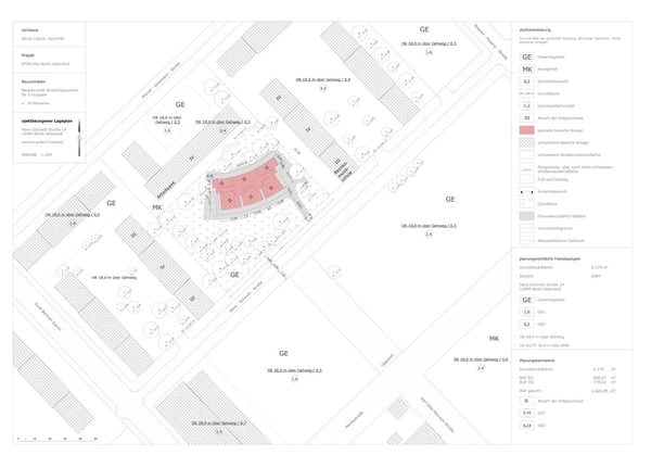 Bei der Plaunung des Kindergarten in Berlin-Adlershof ging es ebenfalls darum, planungsrechtliche Grundlagen einzuhalten. So sollten für dieses Grundstück ein amtlicher Lageplan, ein Brandschutzplan, ein Bauantrag sowie ein Baumantrag erstellt werden.